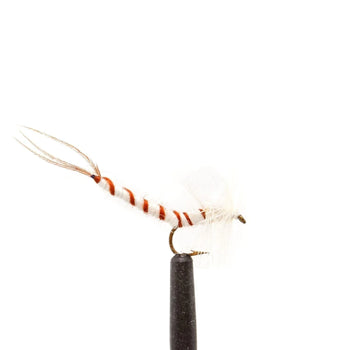 Rusty Spinner (Sizes 16–20): A versatile spinner pattern that covers a wide range of mayfly species, especially PMDs. Its slim, rusty-brown body and outstretched wings mimic spent adults perfectly. Deadly at dusk when trout sip gently in flat water.