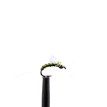 - Disco Midge (Sizes 18-24) – A flashy, high-visibility midge larva imitation, perfect for tailwaters and slightly off-color water. Available in red, and chartreuse, it works best when fished deep under an indicator in slow-moving winter pools.