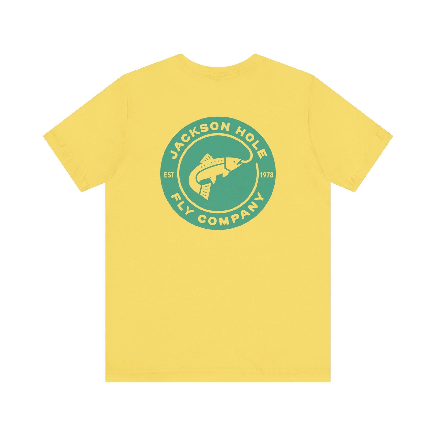 Celebrate your passion for fly fishing with the JHFLYCO Circle Badge Tee, a versatile and comfortable shirt that’s perfect for adventures on the water or casual outings. Featuring the iconic JHFLYCO Circle Badge Logo on both the front left chest and full back, this premium tee combines style, durability, and a nod to Jackson Hole Fly Company's rich heritage.