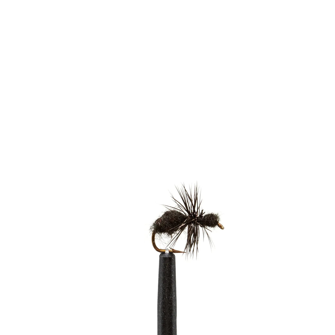 The Black Ant is a time-tested terrestrial dry fly pattern that imitates the silhouette and behavior of a natural ant—an irresistible meal for trout from late spring through fall. Its segmented black body and minimalist profile make it a deadly choice when fishing grassy banks, undercut edges, and overhanging vegetation where real ants frequently end up in the water. This pattern excels when trout are feeding opportunistically between hatches or sipping tiny morsels in calm water.