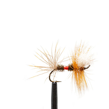 - Para Flash Adams (Sizes 14–18) – A high-visibility parachute version of a classic mayfly imitation. The white post helps track it in rougher water or low light. Use it as an all-purpose dry during uncertain hatches or as the top fly in a dry-dropper rig.
