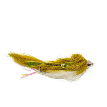- Peanut Envy – Olive, Brown/Yellow, or White (Sizes 2–6): Designed by Kelly Galloup, this fly bridges realism and aggression. The deer-hair head pushes water, the marabou body pulses with life, and the articulated tail gives it a true baitfish kick. Olive is the everyday color; Brown/Yellow shines in stained water; White dominates in bright or clear conditions.