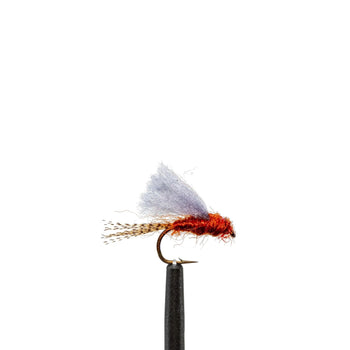 Rusty Soft Hackle (#14–#18): A classic spinner and emerger wet fly with a warm, rusty-brown body and soft flowing hackle that pulses naturally in the current. This pattern bridges the gap between a traditional wet fly swing and a true emerger—it imitates both a struggling mayfly caught mid-emergence and a spent spinner drifting just below the surface. Fish it on a dead drift through soft seams, or let it swing gently and lift at the end of the drift. When trout are feeding subsurface but refusing your wets, the Rusty Soft Hackle’s subtler profile often converts those hesitant fish.