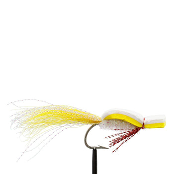 Gurgler (Sizes 4-6): A surface fly that creates a popping action to provoke aggressive strikes. Suggested colors: black, olive, yellow, and white. Use a twitch-and-pause retrieve for best results.