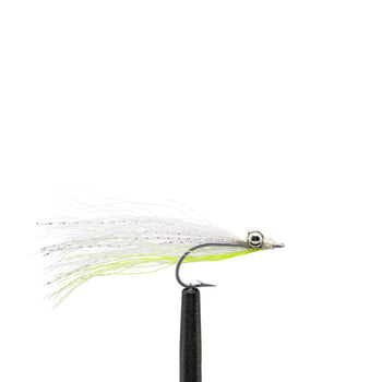 8. Clouser Minnow – Chartreuse/White (#4-8): Simple, balanced, and incredibly effective. The inverted design and dumbbell eyes give this fly a jigging motion that imitates wounded baitfish. The white-over-chartreuse coloration keeps it natural while still visible in winter light. Great for clear, cold rivers where trout feed selectively—fish it low and slow with measured twitches.