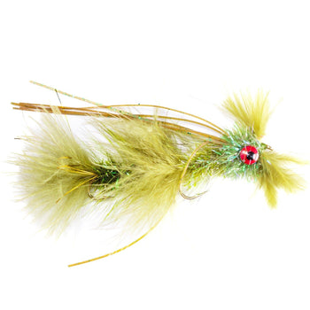 6. Circus Peanut – Olive (#4-8): An articulated classic that combines natural tone with subtle flash. Weighted eyes drop it quickly into the strike zone, while rubber legs and twin bodies pulse with life even on a slow retrieve. Perfect for cold-season streamer days when trout hug the bottom—strip twice, pause, and wait for the line to jump.